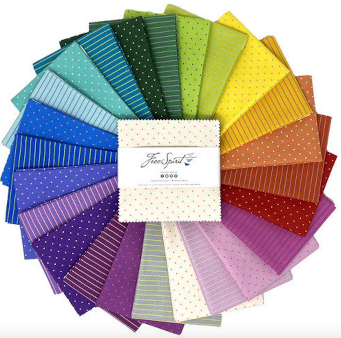 Charm Pack Tiny Coordinates "Dots & Stripes" (Free Spirit), von Tula Pink, perfekt abgestimmt auf ihre Kollektionen